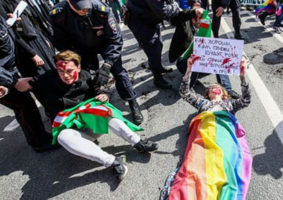 Under Russian’s “gay propaganda” law, public demonstrations in support of LGBT equality are illegal.