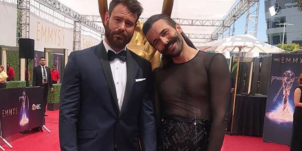 Giving an oh-so-stylish finger to gender norms, Queer Eye star Jonathan Van Ness took to the Emmy Awards red carpet wearing a sheer black dress.