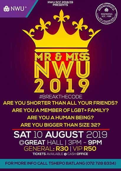 The Sowetan reports that Hope Nokuthula Bhuda won the title at the Mr and Miss NWU event on the university’s Mahikeng campus on Saturday.