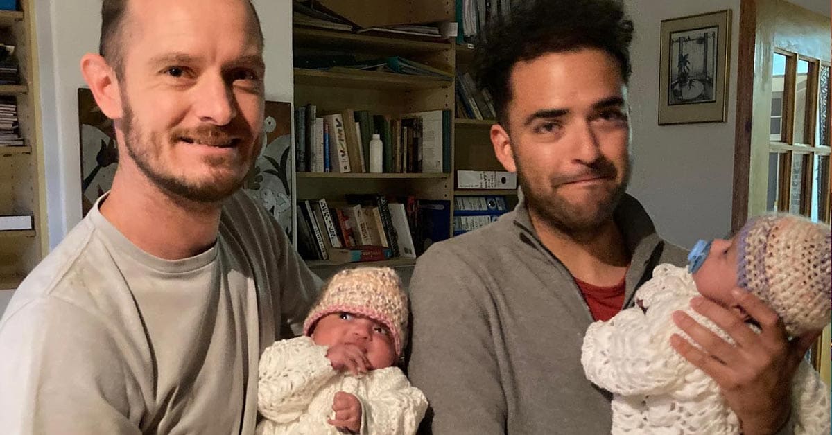 Paula and Maya were born on 13 March in Durban, South Africa through surrogacy. Phillip Lühl, who is Namibian, and his Mexican husband Guillermo Delgado are registered as their legal parents in South Africa.