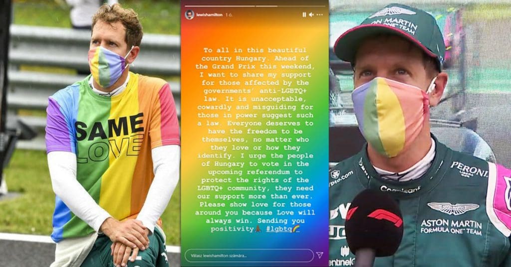 Lewis Hamilton and Sebastian Vettel use world’s focus around this past weekend’s Hungarian Formula 1 Grand Prix to support LGBTIQ+ equality.