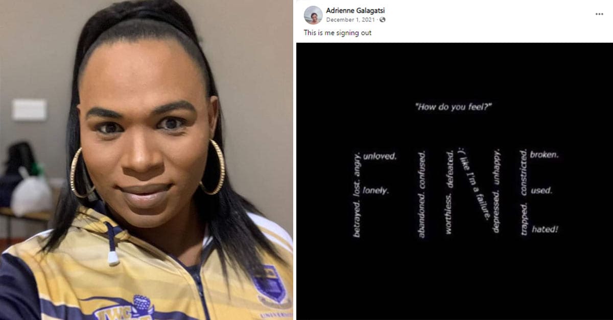 On the 1st of December, a Facebook post by Galagatsi hinted at possible struggles with depression and loneliness. Alongside the comment, “This is me signing out”, she posted a graphic that asks “how do you feel?” above the word “fine” which is, in turn, made up of smaller words such as “lost, unloved, lonely, betrayed, worthless, broken,” and “hated”.