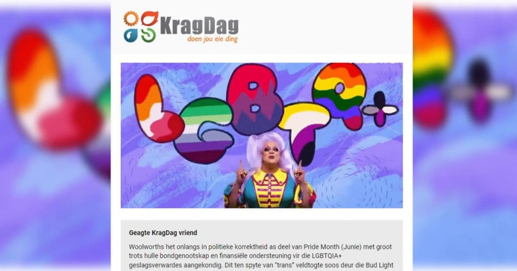 The organisers of the KragDag alternative power exhibition have used their email newsletter to condemn LGBTIQ+ people as unnatural and ungodly.