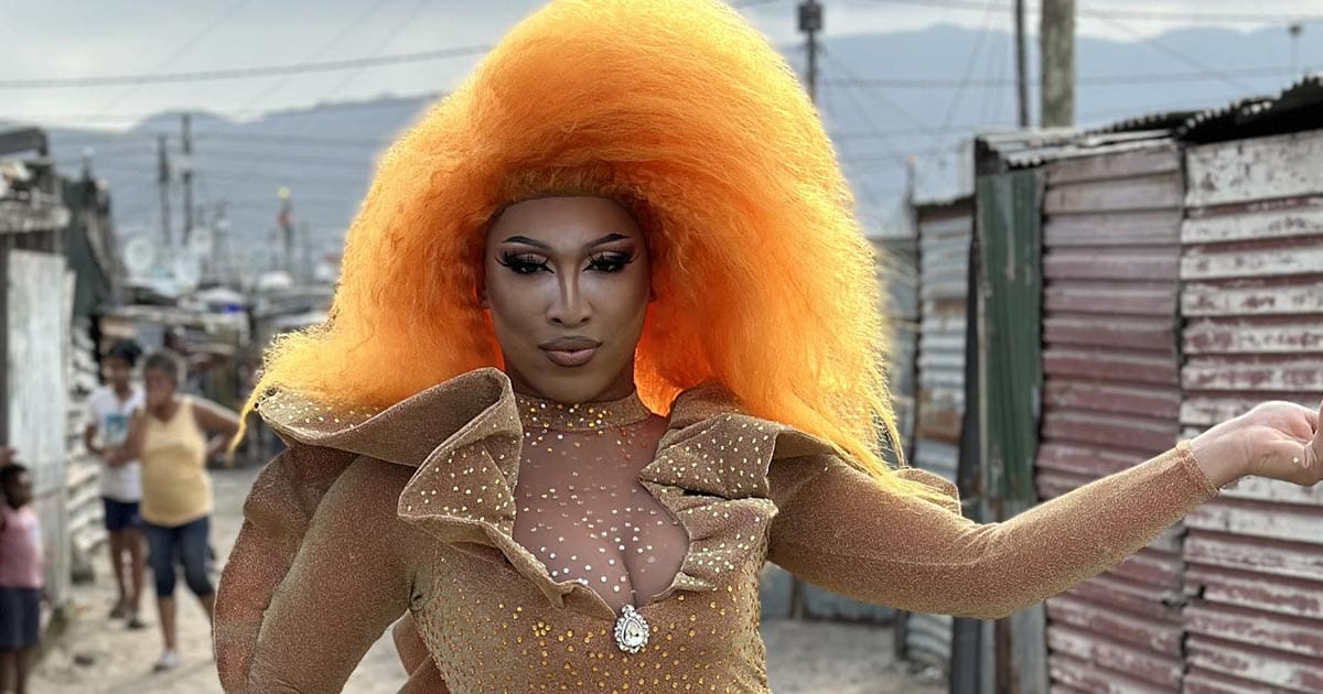 Thirty-three-year-old Fabian van Schalkwyk, also known as Emogan Moore, has been doing drag for 13 years, winning multiple pageants. The sassy queen is also a netball coach and admin clerk at a primary school in Cape Town. Emogan is an openly gay man who wants to hold a safe space for queer children at the school where he works and in the community.