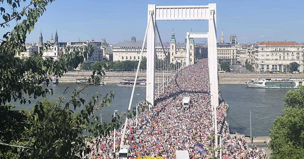 Budapest just turned out with their largest Pride parade turnout EVER after Hungarian Prime Minister Viktor Orbán banned the event and threatened legal punishment. pic.twitter.com/Jndn3wh5vG